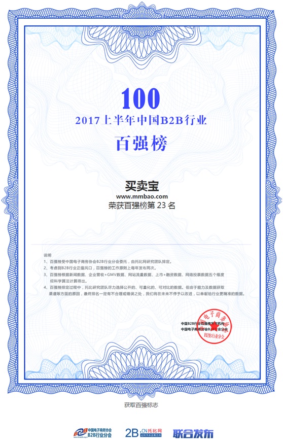 It is reported that being commissioned by B2B Industry Branch of China Electronic Commerce Association, “The Top 100 B2B Enterprises in China in the First Half 2017” is scheduled by 2B research team. This schedule takes five dimensions into account: enterprise news data, revenue plus GMV data, website traffic data, listing plus financing data and online open voting data. Through scientific algorithm setup, the research team determined that these five dimensions account for different weights.