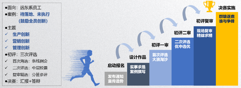 在遠東,人人關注創新,人人愿意創新。多年來,公司內部一直在營造創新環境,努力提升員工創新能力。設計創新案例競賽的目標是希望通過“提煉問題、分析問題、解決問題、助推經營管理”四個核心維度,每年選拔出一些優質案例,幫助企業創新變革。