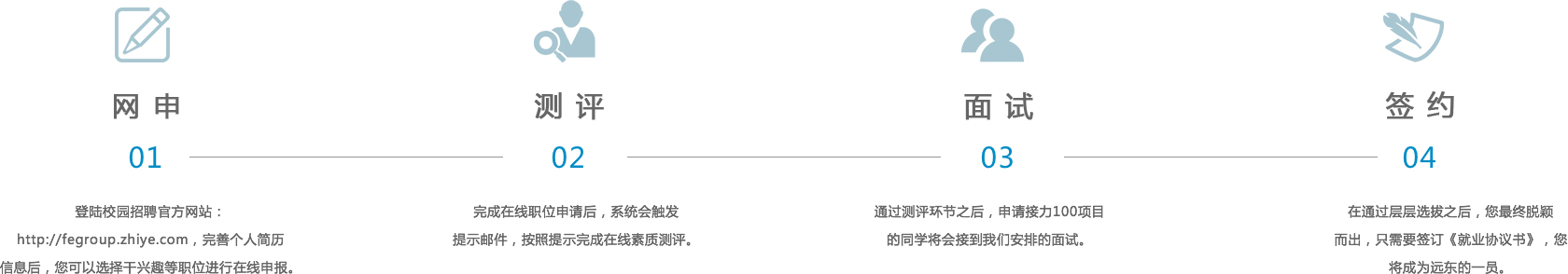 “Relay 100 Program” is a special talents project launched in 2014 by Far East Holding Group. Far East Holding Group is devoted to make it its brand. 100 Postgraduates and 100 graduates are selected from universities of 985 and 211 projects, from universities abroad or special institutions through on-campus job fair. They will be trained and cultivated through work shift, helping them become core workers with high identification, high quality and high skills, and become hard cores to realize the enterprise’ strategic goals gradually. The forth “Relay 100 Program” so far has launched. Welcome all outstanding graduates to participate actively and realize personal value, show your talents and achieve dreams together here in Far East Holding Group.